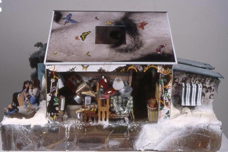 spaces, vaguely reminiscent of Edward Kienholz’s tableaux, are never
