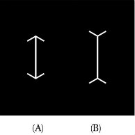 Researchers found that Americans perceive the line with the ends feathered outward (B) as being longer than the line with the arrow tips (A). San foragers of the Kalahari, on the other hand, were more likely to see the lines as they are: equal in length. Subjects from more than a dozen cultures were tested, and Americans were at the far end of the distribution—seeing the illusion more dramatically than all others.