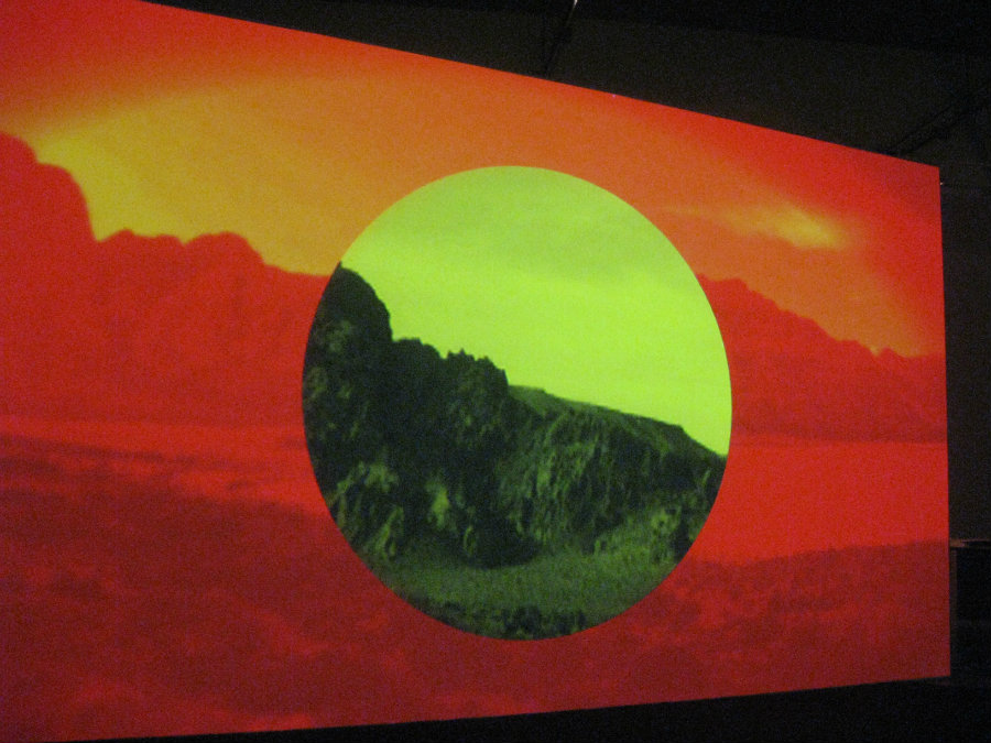 FINAL MACHINE pushes the viewer through the gallery space, into a choreography of sound, visuals and physical forms and steers them under a relentless narrative of indoctrination. The audience is coerced through a formal coded system where the video manifests as architectural form. Three walls: Three ‘circle’ zones; from red, to yellow and then to green.