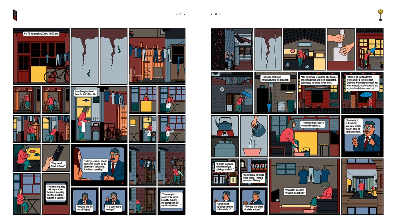 Li Han and Hu Yan continued their exploration for the potential of architectural drawings. With precise lines and flat colorings, plans, elevations, sections, and axonometric projections transformed from 3D models are turned into sophisticated drawings with delicate details in a unique mechanical aesthetic feeling. By adding simple words to the drawings, the authors presented ten interviews in the form of graphic novel. Through these stories, the book showcases the relation among people, architecture and city not only in terms of space and function, but also of time and emotion. Such a fateful subject of architecture is graphically interpreted as an observation with patience, delicateness, and concentration.